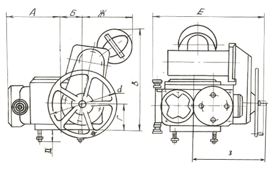 Схема и основные размеры электропривода ВГ